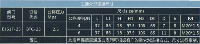 插焊連接直通壓力表閥BJ61F-25